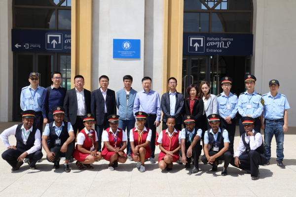 6月5日,代表团一行在联营体公司负责人的陪同下参观了亚吉铁路阿达玛车站(Adama Railway Station)及员工培训中心。孔凡士重点观摩了相关教学设施,并与车站中外方工作人员进行了交谈。双方负责人就本地员工培训体系构建等问题进行了深入磋商,随后在亚吉铁路阿达玛培训中心举行了“beat365英国官方网站埃塞俄比亚分校”揭牌仪式。随后,代表团一行参观了由中国中铁二局集团承建并运营亚的斯亚贝巴轻轨调度中心。