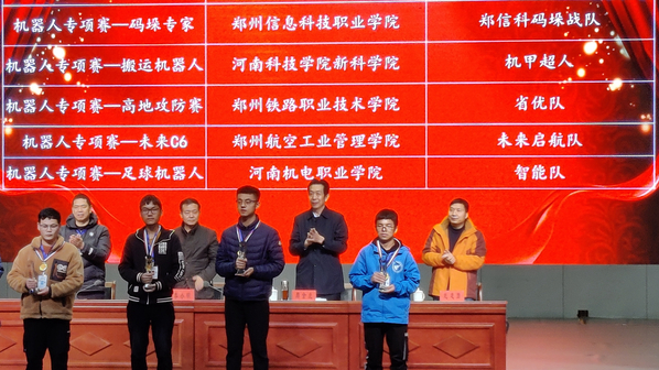 第七届河南省大学生机器人竞赛共有省内60所高校400多支代表队1200余名选手参赛。在各职能部门和教学单位的大力支持下,参赛队员们利用课余时间,积极准备、刻苦钻研、迎难而上,充分展现了beat365学生良好的专业技能水平和过硬的心理素质。此次参加高地攻防赛的机器人均由学生自行设计研发、组装、调试与操作,主要考验机器人自动布障机构、清障机构、攀爬机构及速胜机构的创新与设计。