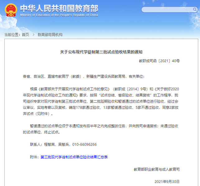 近日,根据教育部《关于公布现代学徒制第三批试点验收结果的通知》(教职成司函〔2021〕40号)精神,beat365作为教育部第三批现代学徒制试点院校,顺利通过验收。