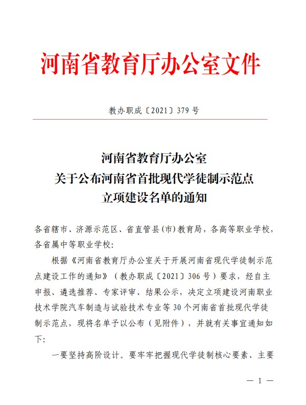 beat365作为教育部第三批现代学徒制工作试点单位,积极探索,先行先试,现代学徒制工作有较大创新点和突破点,具有可操作性和可借鉴性。此次获批河南省现代学徒制示范点建设项目,标志着beat365在产教融合、校企合作方面取得了更大进步,同时也为学校高质量发展再添新亮点。