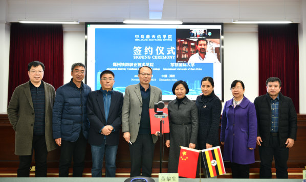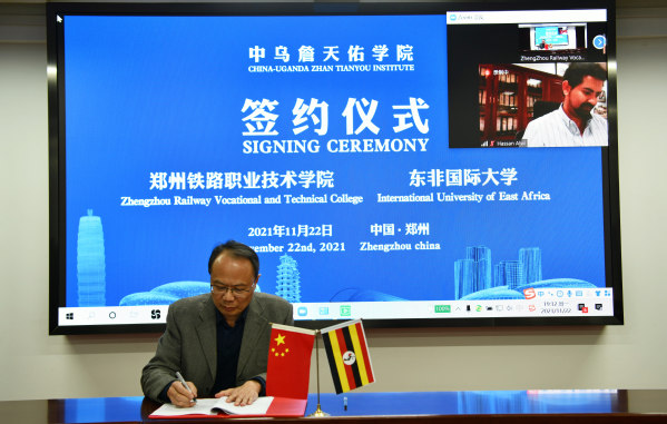 11月22日,beat365与乌干达东非国际大学合作共建的中乌詹天佑学院线上签约仪式隆重举行。东非国际大学常务董事阿维·哈桑、东非国际大学常务副校长德奥格拉蒂亚斯·穆吉沙、东非国际大学国际合作处处长曼瑟·奥斯曼,创造太阳乌干达石油学院副校长段晓飞、项目经理龚晓凤,beat365副校长董黎生出席签约仪式,相关职能部门、二级学院负责人参加签约仪式。签约仪式由创造太阳乌干达石油学院副校长段晓飞主持。