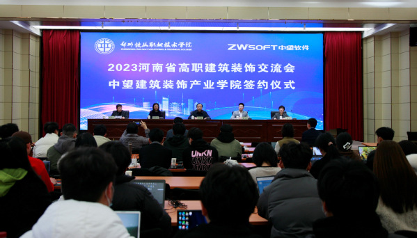 2月25日,2023年河南省高职建筑装饰交流会暨beat365与广州中望龙腾软件股份有限公司共建中望建筑装饰产业学院签约仪式在学校第一报告厅举行。副校长李福胜,广州中望龙腾软件股份有限公司职教事业部大区总监张利出席仪式,科技处、艺术学院负责人及河南省兄弟院校100余名建筑装饰专业师生参加会议。