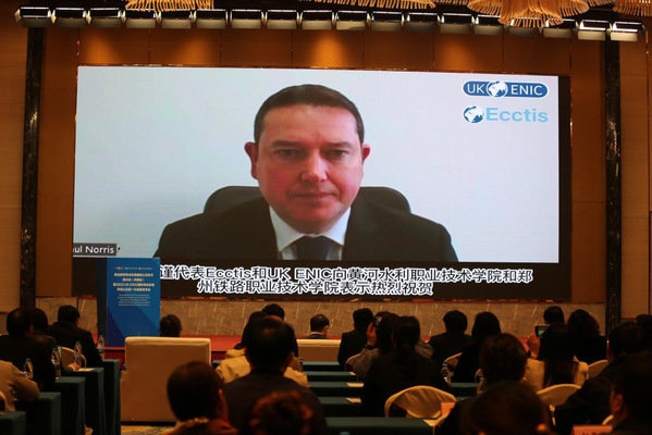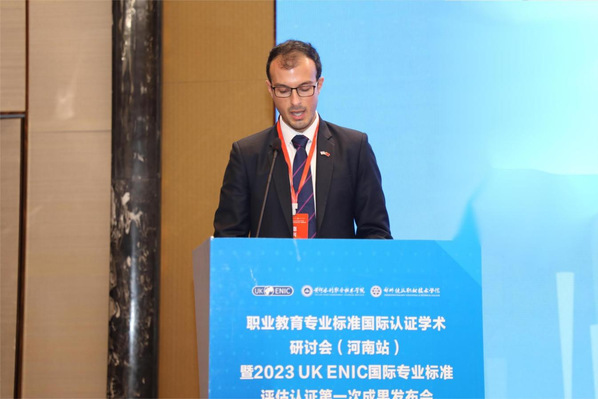 河南省教育厅二级巡视员徐恒振介绍了河南省省情,对两所学校顺利通过UK ENIC国际专业标准评估认证表示祝贺。他指出,河南省坚持教育对外开放,通过教育国际合作与交流助推教育高质量发展。在职业教育领域,河南省推动有特色优势的职业院校联合企业“走出去”办学,打造出具有中原特色的境外办学品牌,服务共建“一带一路”教育行动。