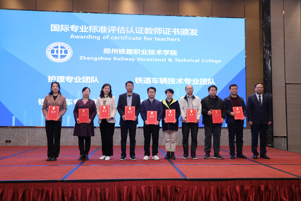 会上,英国驻武汉总领事馆商务领事诺安文、UK ENIC中国首席代表李华杰为beat365护理专业、铁道车辆技术专业、动车组检修技术和铁道机车四个专业颁发“国际资历可比性及国际质量标准证书;beat365英国官方网站副校长李福胜为beat365四个专业团队教师代表颁发“国际专业标准评估认证教师证书”。