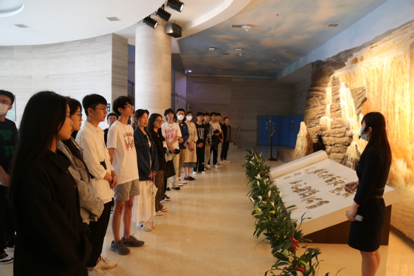 黄河博物馆是世界上最早成立的江河博物馆之一,是我国唯一一座以黄河为专题内容的自然科技类博物馆。在讲解员引导下,先后参观了以“华夏国脉——黄河巨龙的缩影”为题的序厅、流域地理、民族摇篮、千秋治河、治河新篇、和谐之路等六个展区。它通过600余幅照片、丰富的历史文献和珍贵的文物标本、灯光图表、工程模型、录像和触摸屏等,生动展示和介绍了黄河的地理、地貌、气候等自然概况、灿烂的黄河文化以及历代水患灾害、河患治理、水土保持、水资源开发利用、治理开发的远景规划等内容。同学们看着一幅幅照片、一个个文物标本,仿佛徜徉于九曲十八弯的母亲河之上,感受到中华民族自强不息、蓬勃向前的精神之力。