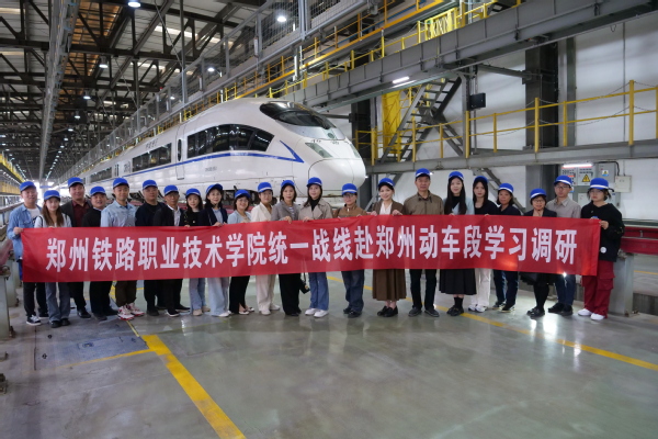 郑州动车段厂区环境优美,工作场所井然有序。在该段负责人的带领下,大家先后走进动车检修库、职工教育培训中心和安全生产调度指挥中心,观摩高铁动车组内部构造、检修工艺流程和生产调度运行,听取企业生产管理和职工培训等情况介绍,与现场管理人员、技术人员和一线工人进行交流,了解中国高铁领先科技的创业发展历程,体验“科学求实、相容并蓄,自主创新、赶超一流,忠诚祖国、拼搏奉献”的高铁精神,感悟感恩报国、爱岗敬业,开放包容、勤奋好学,严谨精细、创新超越的高铁人品格。通过参观学习,大家纷纷表示,中国高铁作为中国现代产业的一张亮丽名片,集中体现了以爱国主义为核心的民族精神和以改革创新为核心的时代精神,感染人、激励人,要从中国高铁非凡成就中汲取奋进力量,进一步增强“四个自信”,恪守立德树人使命,为强国建设、民族复兴伟业培养更多优秀人才。