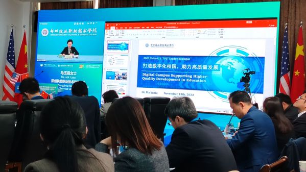 11月13日,2023中美百千万院校长云携手暨中美职教院校长对话活动在线举行,校长马玉霞出席会议并发表主题演讲。