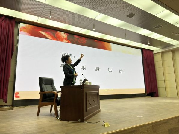 范静以其深厚的艺术功底和丰富的演出经验在豫剧界享有崇高声誉。此次讲座,范静从豫剧的起源、发展以及表演技巧和特点等多个角度为同学们解读了豫剧的魅力。她生动的讲解和精彩的演示引起了在场同学们的极大兴趣和热烈反响。讲座现场,范静以豫剧独特的唱腔、表演和身段为同学们带来了一场精彩的豫剧演出。她巧妙演绎了豫剧中经典剧目的片段,特意准备了大家耳熟能详的豫剧《花木兰》、《朝阳沟》里的经典唱段,将观众带入了豫剧的艺术世界。