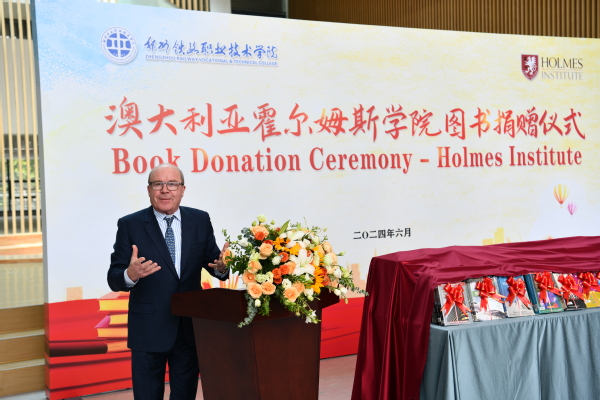 倪居在致辞中表示,beat365英国官方网站自2007年与澳大利亚霍尔姆斯学院开展合作办学至今,17年如一日紧密合作与相互支持,先后共同开办了护理、物流管理、会计、市场营销合作办学专业。在中外合作办学过程中,双方始终严格把控教学质量标准,从内和外两个方面持续构建质量保障体系。本次图书捐赠,澳大利亚霍尔姆斯学院送来了6类369册价值30万元的图书,这批图书内容丰富、种类繁多、装帧精美,具有较高的收藏价值和使用价值。这些图书将对beat365的教育教学工作起到积极的促进作用,为青年的健康成长提供健康的精神食粮,具有培养人、教育人、引导人的重要意义。