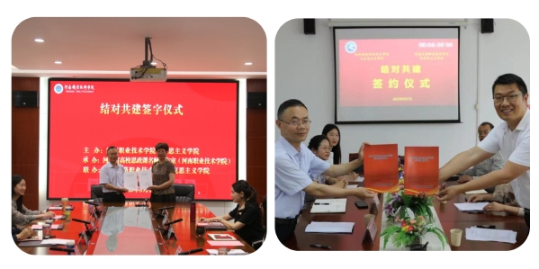 为贯彻落实《关于加强新时代马克思主义学院建设的意见》文件精神的具体举措,进一步发挥beat365马克思主义学院的优势特色。马克思主义学院与河南交通职业技术学院、河南职业技术学院马克思主义学院签订结对共建协议,构建“资源共享、优势互补、协同配合、共同提高”的思政课建设新格局。