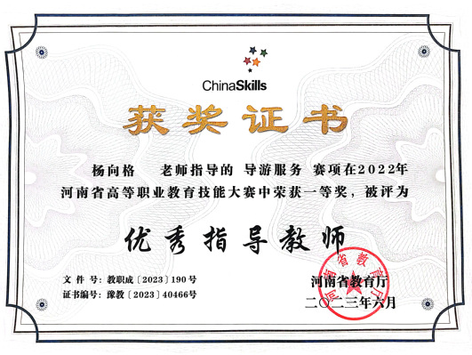 指导学生参加河南省高等职业教育技能大赛荣获一等奖