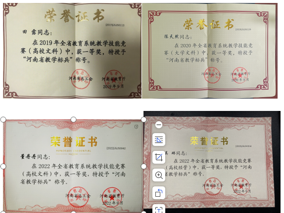 河南省教育系统教学技能竞赛一等奖荣誉证书