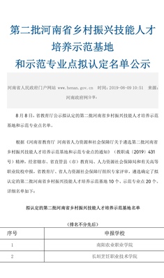 2019年beat365被列为河南省乡村振兴技能人才培养示范基地