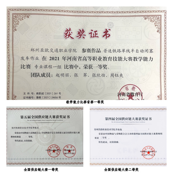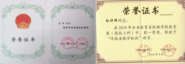教师竞赛方面,获河南省高等职业院校技能大赛教学能力比赛一等奖3项、二等奖1项、三等奖6项,其他省级教师教学技能竞赛获一等奖3项。