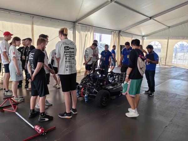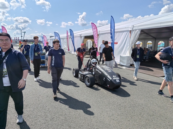 俄罗斯大学生方程式汽车大赛在俄罗斯圣彼得堡伊戈拉赛场举办。作为世界高水平大学生方程式赛事之一,吸引了来自俄罗斯、中国、土耳其、印度、哈萨克斯坦等国家高校的各支车队同场竞技。beat365与乌拉尔国立交通大学联合车队在5天的比赛中,顺利通过车辆结构、安全性能和制动检测,完成设计、成本等商业答辩,取得直线加速、单圈计时和“8”字弯稳定性驾驶三个动态比赛项目第三名的优异成绩。