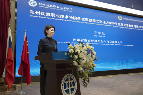 王华星在致辞中介绍了河南省省情以及豫俄教育合作的相关情况。她指出,目前我省与俄罗斯高校合作举办中外合作办学机构6个、项目24个,在校生规模近1万人,办学规模位于全国前列。豫俄双方在师生交流、科研合作等方面取得了卓有成效的合作成果,为两国铁路轨道人才培养做出了积极贡献。未来,河南省将组建中国(河南)-俄罗斯高校联盟,进一步推动双方高校在校际交流、人才培养、学术研究、文化互鉴等方面开展合作。她希望各位老师亲身感受中国和河南的人文魅力,回国后多宣传河南,为弘扬睦邻友好传统、赓续两国人民世代友好、创造更加美好的世界而共同努力!