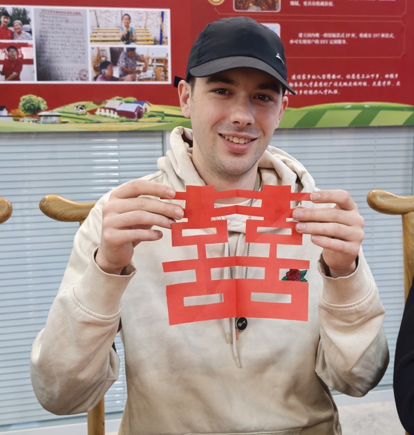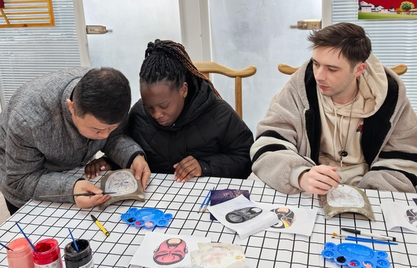 砖雕展示处,留学生们围绕着精美的作品,好奇询问,在老师示范下,亲身体验砖雕制作的奇妙过程。木版年画区,留学生们在老师指导下,为雕版均匀上色,仔细印制,一幅幅充满古韵的年画跃然纸上,让他们对这一民俗艺术的内涵有了更深感悟。剪纸老师巧手如飞,纸张瞬间变幻为精美的图案,引得留学生们阵阵惊叹,他们纷纷拿起剪刀尝试,在一折一剪中触摸传统技艺。