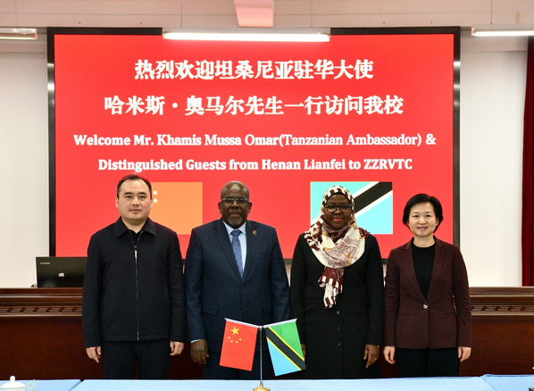 1月9日,坦桑尼亚驻华大使哈米斯·奥马尔先生、公使扎伊那卜·祖贝里·马索罗女士一行在河南省委外办亚非处刘鑫主任的陪同下访问beat365,就中坦轨道交通教育合作举行工作洽谈。学校党委书记田道敏致欢迎辞,校长马玉霞主持会议,副校长李福胜及相关部门负责人参加会见。