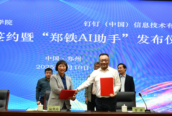 陆艳琦详细介绍了学校在产教融合、校企合作、科学研究、智慧校园建设等方面取得的突出成果。她指出,学校坚持“轨道为主、融合发展、数智赋能、开放办学”的特色发展模式,认真贯彻落实《河南省“人工智能+教育”三年行动计划(2025-2027)》文件精神,积极打造教育数字化建设高地,推动教育与数字技术深度融合。希望校企双方以“铁小智”AI智能体共建为契机,不断探索人工智能与学校教育教学、管理深度融合的新模式、新路径,为推动学校高质量发展赋能。