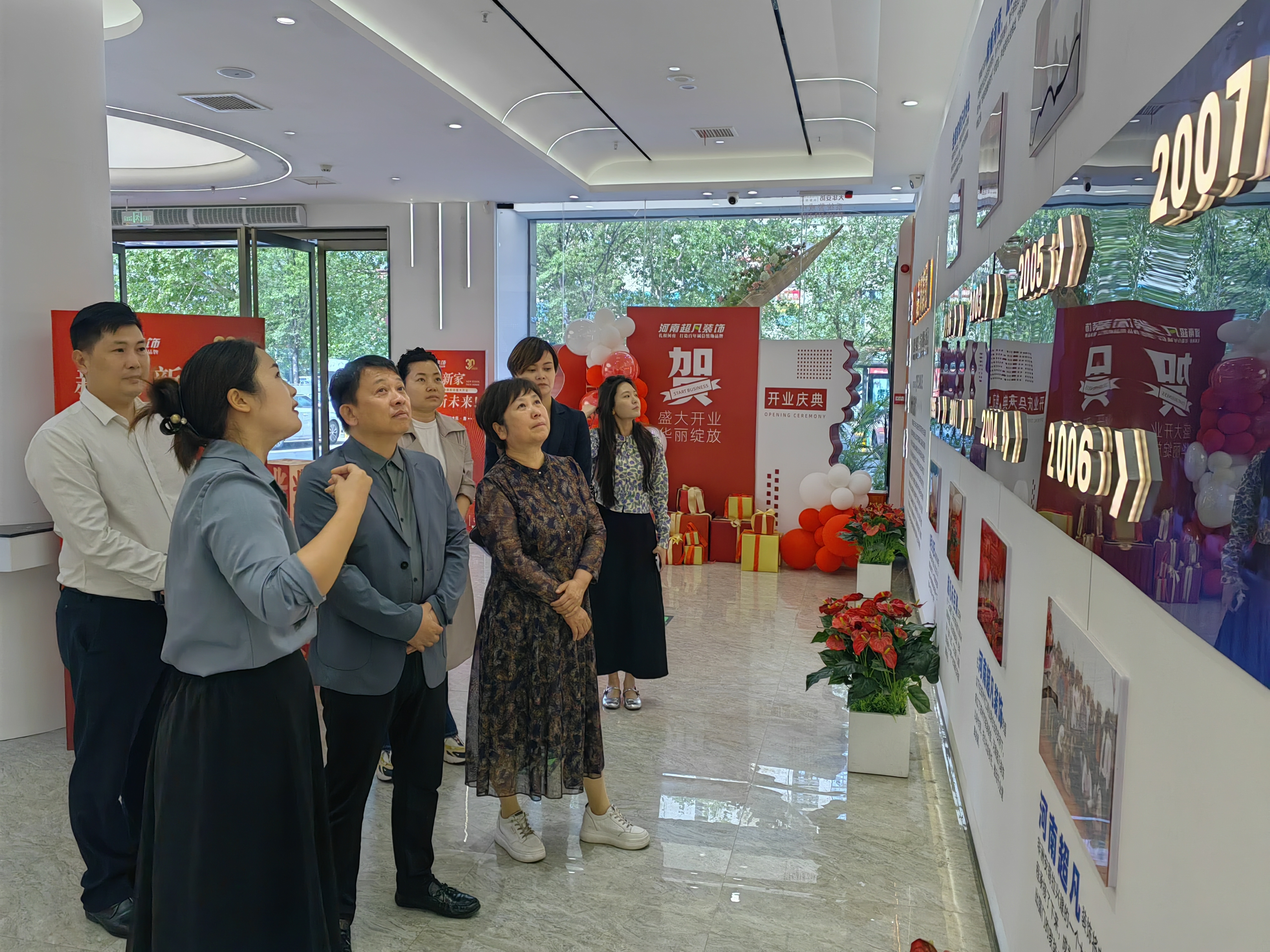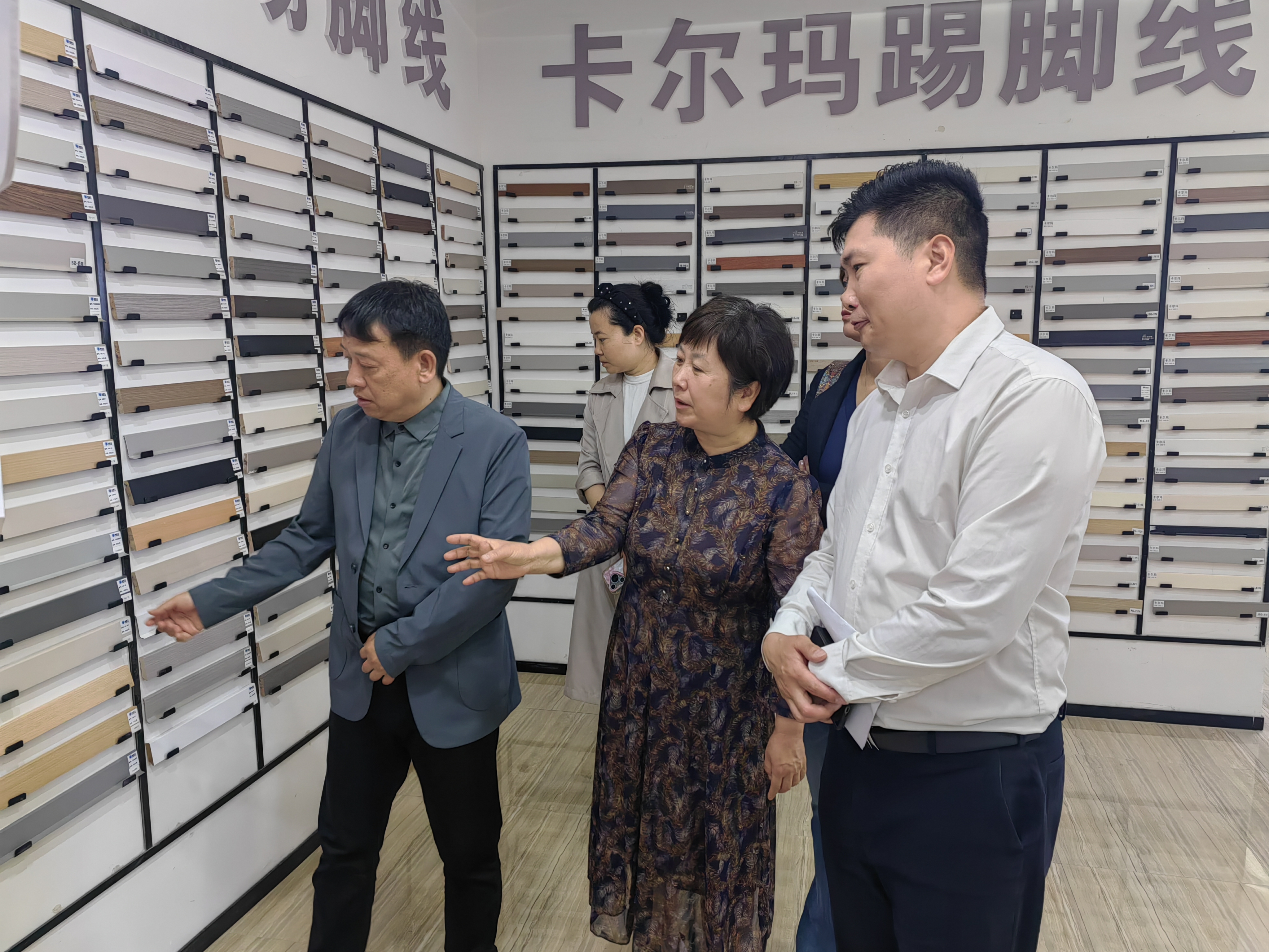 在超凡装饰集团总经理李花玲的陪同下,艺术学院一行先后参观了企业设计部、材料部及软装部。设计部展示了企业近年来的创新设计案例与数字化技术应用成果;材料部重点介绍了环保材料研发与供应链管理经验;软装部则呈现了从方案设计到场景落地的全流程实践。程萍对企业的技术革新与规范化管理表示高度认可,并强调“行业需求是人才培养的风向标,此次走访为学院优化实践教学提供了重要参考”。