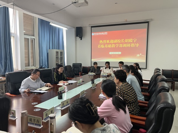 在认真听取汇报后,胡殿宇对基础教学部近年来在教学改革创新、师生竞赛等方面取得的成绩表示肯定,并对未来工作提出要求,一是要深化教学改革,把握人工智能技术发展机遇,革新教学模式,赋能课程建设;二是要聚焦创新突破,立足职业教育特性,在课程体系、内容架构、教学方法上探索特色路径;三是要严守安全与廉洁底线,压实安全责任,落实“一岗双责”,以安全稳定和作风建设护航事业稳健发展。