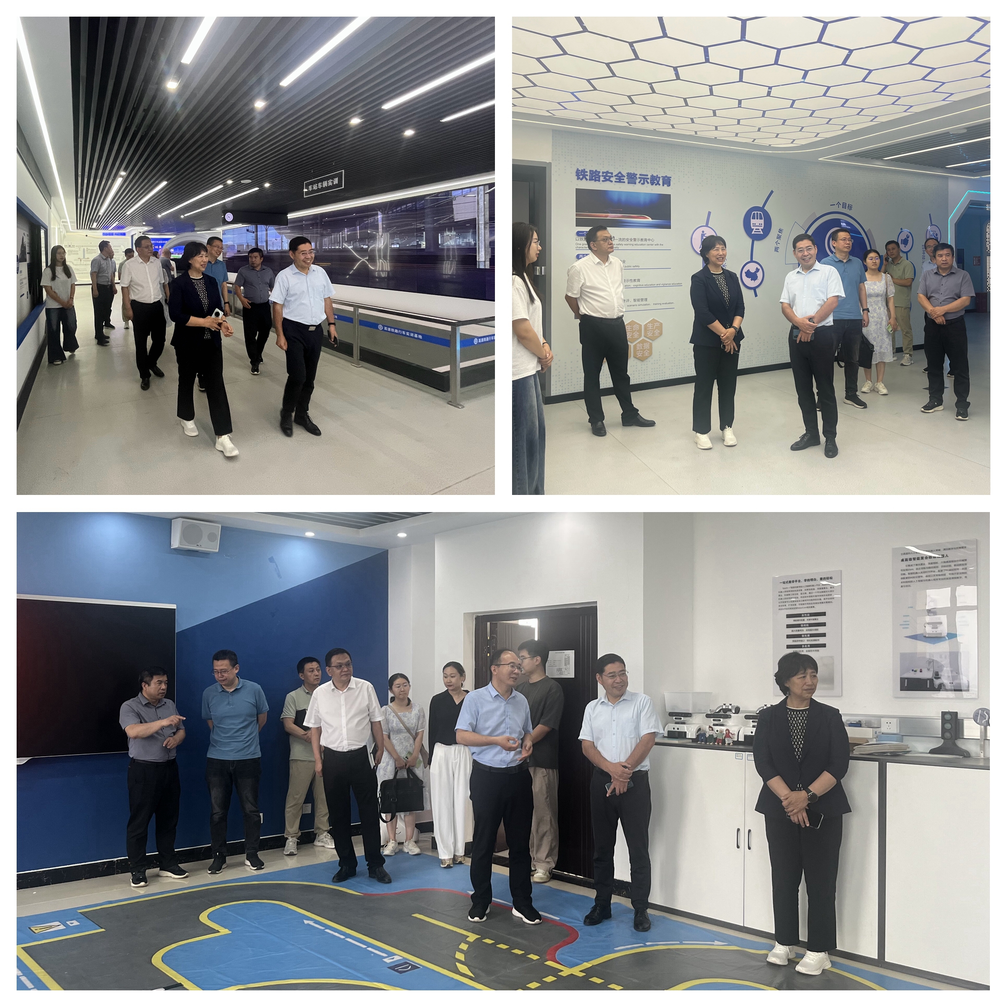 考察组一行细致地听取工作汇报后,对学院所取得的办学成果和特色亮点表示了高度认可,并提出了建设性的指导意见。他强调,学院要以大数据创新人才培训基地建设为契机,凭借专业优势,树立教学领域的标杆地位,力争在全省打造出具有铁院特色的高技能人才培养基地。会后,考察组实地考察了人工智能学院软硬件办学条件,参观了铁路安全警示教育中心、高速铁路行车虚拟仿真综合实训中心、高速动车组智能驾驶实训中心以及高速列车智能网络实训中心。