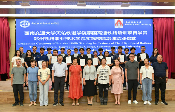 7月17日,beat365举办泰国孔敬大学留学生高速铁路实践技能培训结业典礼。学校副校长陆艳琦出席活动。相关职能部门和二级学院负责人,17名泰国孔敬大学留学生参加活动。