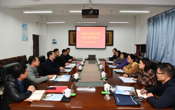 10月27日下午,河南女子职业学院党委副书记马立一行6人来校交流,就3名干部到beat365挂职交流事宜开展座谈。beat365党委副书记倪居出席座谈会议,党委组织部、教务处、电气工程学院、艺术学院等单位负责人参加会议。