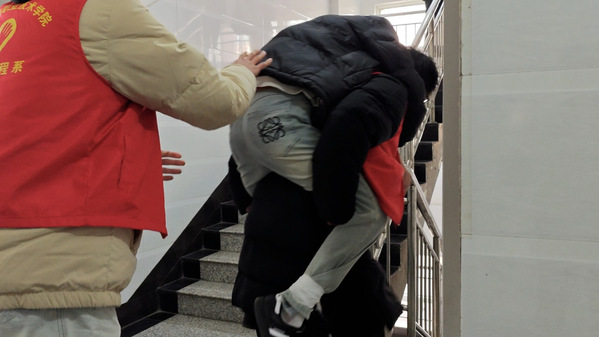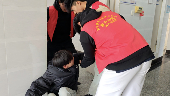 演练过程在高度仿真的情境下也出现了“意外”插曲,有效检验了应急预案的实战性。在疏散过程中,一名同学在楼梯转角处不慎摔倒。现场指挥员立即通过通讯设备通报情况,书院医疗与救援应急小组迅速启动。救援人员在一分钟内抵达现场,在对同学进行初步安抚和检查后,判断其腿部可能扭伤。他们随即利用随身携带的急救包,用专业手法以绷带对其腿部进行了妥善固定。为避免二次伤害,救援小组果断采用背负式救援法,迅速将其转移至安全区域的临时医疗点进行进一步观察与处置。这一突发状况的成功处理,充分展示了书院应急响应机制的有效性和救援团队训练有素的专业素养。