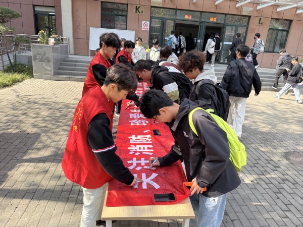 在书院门口,“关注消防 珍爱生命火灾无情预防先行”的主题条幅格外醒目,吸引了过往学生的目光。条幅签名活动现场,同学们纷纷驻足,在写满安全承诺的条幅上郑重签下自己的名字,以实际行动表达对消防安全工作的支持与重视。一张张签名不仅是对消防安全责任的承诺,更凝聚着全院学生共筑安全校园的决心。