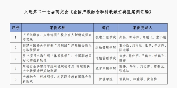 本届高交会特别设立科研成果转化与产教融合专馆,并举办第二届产教融合与科教融汇论坛,旨在汇聚高校、企业、科研机构、金融机构的智慧与力量,探讨跨界协同的创新模式与实施路径,破解人才供给与产业需求的结构性矛盾,助力科技成果更快更好地转化为现实生产力。论坛上发布了《全国产教融合与科教融汇典型案例》,beat365机电工程学院、运输管理学院、机车车辆学院和护理学院报送的5个案例成功入选全国产教融合典型案例。