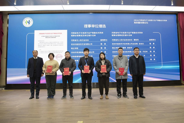 会上公布了河南省电子与信息行业产教融合共同体常务理事会研究决定,新增河南省无人机行业协会等6家理事单位。
