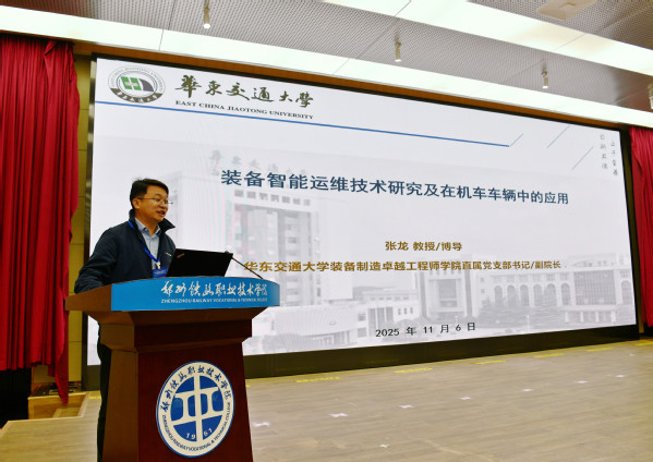 主旨报告环节由副校长陆艳琦主持。该环节特邀多位行业专家作专题报告,深度解析行业关键问题与发展方向。中国铁路郑州局集团有限公司副总工程师李万臣以《中国铁路发展中的使命担当》为题,深刻阐述了新时代铁路人的责任与担当;华东交通大学张龙教授围绕《装备智能运维技术研究及在机车车辆中的应用》展示了最新研究成果;北京交通大学机电学院李强教授在《我国轨道交通装备的技术创新实践与展望》报告中,系统梳理了我国轨道交通从追赶到引领的创新路径,为行业技术发展提供了重要参考。三场报告内容翔实、视角独特,为与会代表带来了深刻启发。