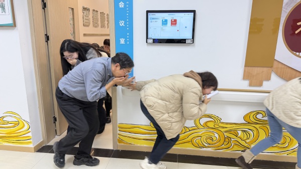 讲座结束后,全体参训人员在牛教员的指挥下,有序开展了模拟火灾逃生演练。演练模拟教学楼发生火情,师生们按照预定的疏散路线,低姿捂鼻、迅速有序地撤离至安全区域。整个演练过程组织严密、反应迅速,达到了预期效果。