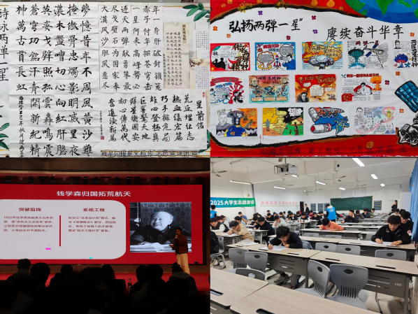 宣讲团立足校园主阵地,精心策划并组织了多场主题教育活动。除在校内面向各院系师生密集开展多场系统性的主题宣讲会外,还成功举办了“两弹一星”主题演讲比赛、知识竞赛、手抄报比赛及诗词书法创作大赛等系列赛事,并组织观看了《邓稼先》《钱学森》等经典影片。这一系列沉浸式、互动性的活动,让同学们在理论学习与艺术熏陶中深刻感悟科学家的崇高品格,成功在校园内营造了崇尚科学、致敬功勋、爱国奉献的浓厚氛围,使“两弹一星”精神成为激励广大学子奋发向上的强大动力。