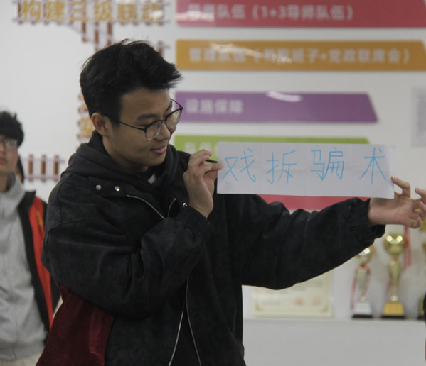 随着氛围渐入佳境,核心魔术表演环节正式拉开帷幕。“猜心中数字”“测专属姓氏”“玩转魔术环”等趣味节目轮番上演,神奇的效果时而引发全场欢呼,时而逗得大家开怀大笑。更具深意的是,每个魔术表演结束后都设置了原理揭秘环节——志愿者结合魔术“看似神奇、实则有套路”的特点,类比诈骗分子“精心设计陷阱、诱导他人上当”的作案逻辑,让同学们在恍然大悟间直观理解“套路背后皆有破绽”的道理。现场同学踊跃参与互动,积极跟随魔术师学习简易魔术技巧,成功完成互动的同学还收获了定制小礼品,在收获欢乐与成就感的同时,加深了对反诈知识的记忆。