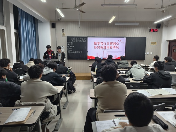 12月7日,两场特色活动同步发力。“勤学笃行启智润心,务实奋进培育清风”主题班会围绕五大板块展开,以“三禁”筑牢学业底线,以“两前”树立行动标杆,以“一带”搭建互助平台,引导学生将个人成长与国家需求紧密结合。同日,“逐光而行,笃学致远”国励学子进班分享活动顺利举行,获得上学年国家励志奖学金的优秀学子走进班级,从专业学习、时间管理、备考心态等方面传经送宝,为同学们提供了实用学习指引。