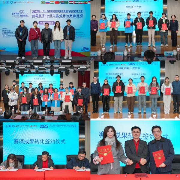12月28日,2025“一带一路”暨金砖国家技能发展与技术创新大赛首届数字IP衍生品设计与制造赛项全国总决赛颁奖仪式在上海市群星职业技术学校圆满落幕。beat365艺术学院教师杨路、郭亚楠带领的两支参赛队伍发挥出色,视觉传达设计专业学生杨斌荣获一等奖、王保禄荣获二等奖。其中,杨路老师指导的队伍凭借出色的作品设计取得了本次大赛全国第一名的优异成绩,并现场与上海宏满教育科技有限公司、上海都市旅游卡发展有限公司成功签约,实现了赛项成果转化。beat365同时荣获“最佳组织奖”,成绩斐然。