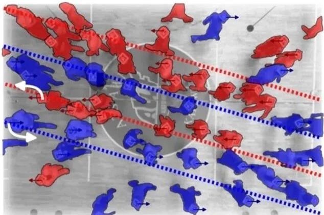 当人群朝相对地两个方向穿行时,我们是如何自发地形成两条定向的人流从而有秩序地通行的呢?3月2日,一篇发表在《科学》(Science)上的论文提出了一套新的数学理论,可以解释并预测人流的形成,并利用真实人群的数据验证了该理论。