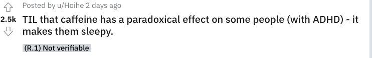 比如在这个热贴中,国外网友们纷纷表示作为多动症患者,咖啡因要么没用,要么让他们犯困,起到了和常识相反的效果。