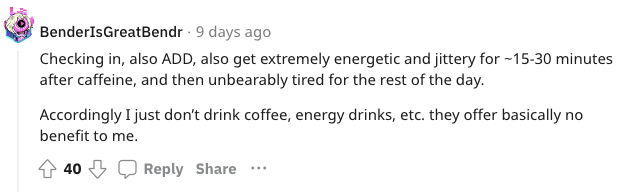 而在多动症患者这边,许多人认为咖啡因没什么用,甚至有反效果,所以才有了文章开头那些热烈讨论。