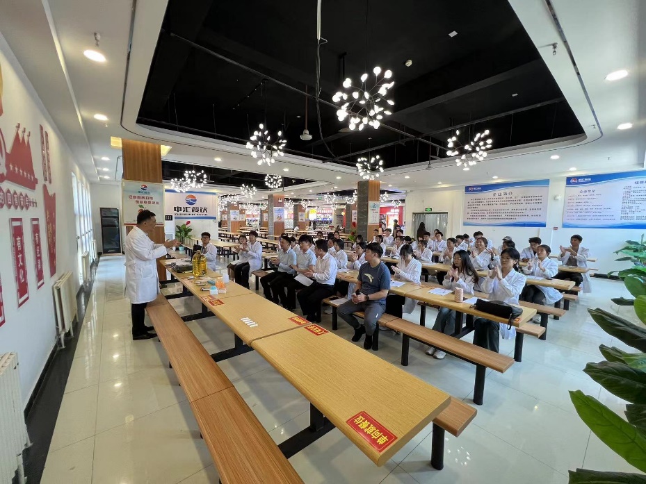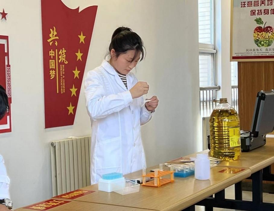 此次实践教学活动的主要内容是食用油中黄曲霉毒素ELISA现场快速检测。翟百强教授首先进行了检测步骤的讲解与示范,随后分别由两位学生和四位食堂工作人员进行了实际操作并比对检测结果。所有检测结果均为阴性,检验合格。