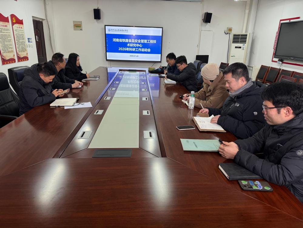 1月28日,河南省铁路食品安全管理工程技术研究中心召开2026年科研工作启动会。会议由工程中心副主任翟百强主持,药学院院长、工程中心主任张晓霞,药学院党总支书记李建升及药学院副院长王洪涛出席会议,中心全体博士教师参加。