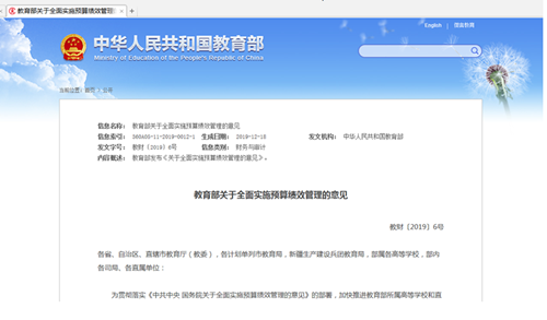 全面实施预算绩效管理是推进国家治理体系和治理能力现代化的内在要求,是深化财税体制改革、建立现代财政制度的重要内容,是优化教育资源配置、提升教育公共服务质量、构建服务全民终身学习教育体系、推动加快实现教育现代化的重要举措。近年来,教育部在预算绩效管理工作方面取得了积极的进展,积累了一些有益经验,教育经费使用效益不断提高,较好地支撑了教育事业发展。但与中央全面实施预算绩效管理的要求相比还存在一定差距,主要表现在:绩效管理意识有待进一步加强;绩效管理的广度和深度有待进一步拓展;绩效评价结果的应用不充分,激励约束机制有待进一步完善;绩效管理未能充分体现教育行业规律和经费使用特点等。为此,各地各单位各司局必须将思想和行动统一到党中央、国务院关于全面实施预算绩效管理的决策部署上来,把全面实施预算绩效管理作为健全治理机制、优化资源配置、激发内生动力、提高管理效能的重要抓手,作为推进教育治理体系和治理能力现代化的重要举措,确保各项改革任务落到实处。