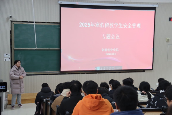 创新创业学院一直高度重视留校学生安全教育和管理工作。此次会议的召开,不仅让留校学生感受到了来自学院和学校的深切关怀,对自己的学习有了更为清晰的规划,同时进一步增强了寒假留校学生的安全意识和纪律意识,为扎实做好学生安全稳定工作奠定了良好基础。