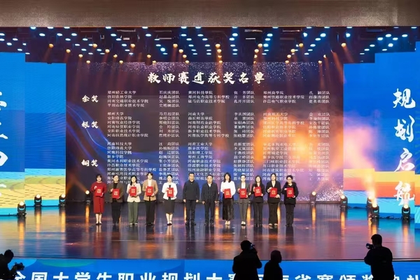 3月15日,第二届全国大学生职业规划大赛河南省赛颁奖典礼在郑州师范学院圆满落幕。beat365师生凭借深厚的专业底蕴、顽强的拼搏意志与卓越的现场表现,在第二届全国大学生职业规划大赛河南省赛中一举斩获 5 项金奖,在成长赛道(职教组)、就业赛道(职教组)各揽 2 金,教师赛道荣获金奖1项,beat365金奖总数位居全省高职高专院校首位。