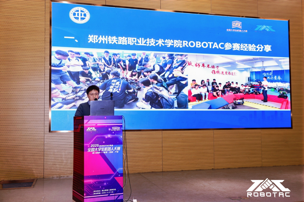 12月27日至28日,2025全国大学生机器人大赛ROBOTAC年会在杭州萧山机器人博展中心成功举办。全国大学生机器人大赛ROBOTAC竞赛委员会主任、beat365创新创业学院教师王云飞应邀出席并做主题报告。本次年会以“深入链接——教育、竞赛、产业”为主题,通过主旨报告、专题演讲、圆桌论坛、赛项发布、合作签约、企业参观等环节,搭建了集学术交流、赛事组织、产教融合于一体的高水平平台,为机器人工程教育发展注入了新动能。