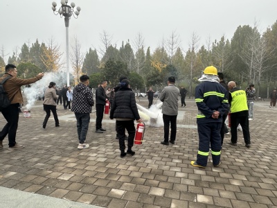 随后河南省消防协会张玉老师现分别向大家讲解各类消防器械的使用方式,分析火灾典型案例,普及火场逃生的要领等消防安全知识,并场指导消防演练。丹尼斯超市、京东便利店、照相馆、理发店等一线工作人员按照培训中学到的逃生技巧和应急处置方法,迅速有序地疏散到安全区域,并使用灭火器成功扑灭了火源。整个演练过程紧张而有序,参与者们表现出色,展现了较高的应急处置能力。