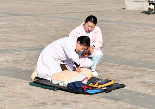 随后,党委保卫部开展了反恐防暴演练,真实模拟了歹徒非法入侵校园场景,安保人员熟练使用防暴器械制服歹徒。后勤服务中心详细讲解、现场展示了心肺复苏和ADE的使用方法。参加活动人员聆听观摩了应急逃生的重点和消防器械的使用规范。讲解结束后,校领导就消防灭火器的使用方法进行了现场展示。