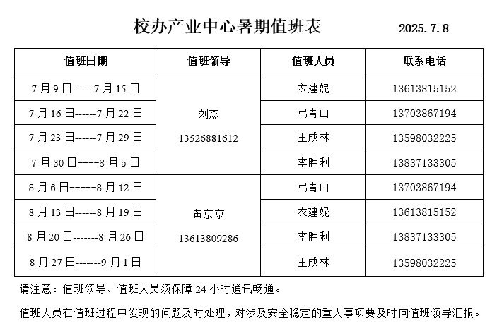 校办产业中心暑期值班表